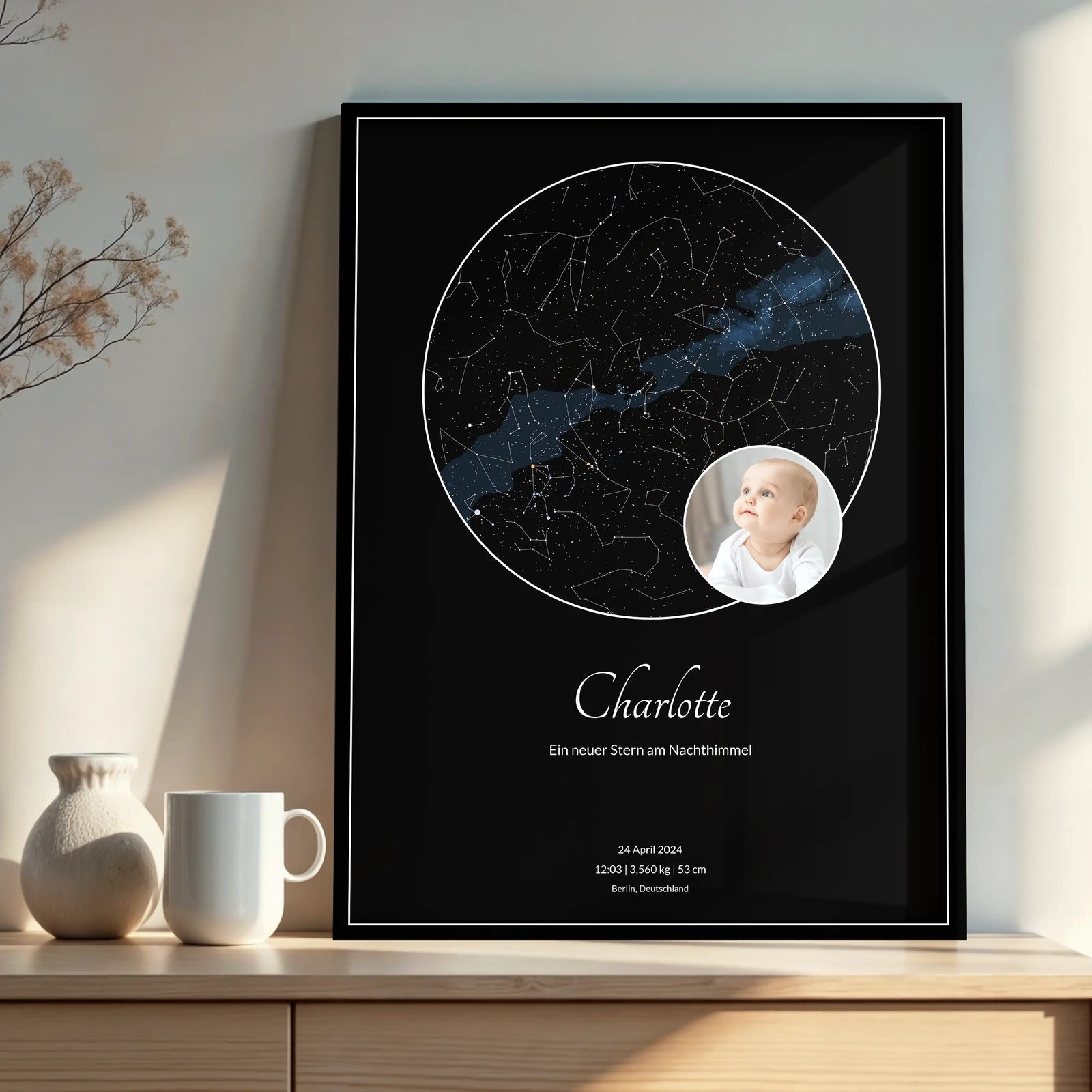 Eine zeitlose Sternkarte der Nacht, in der euer Kind geboren wurde.